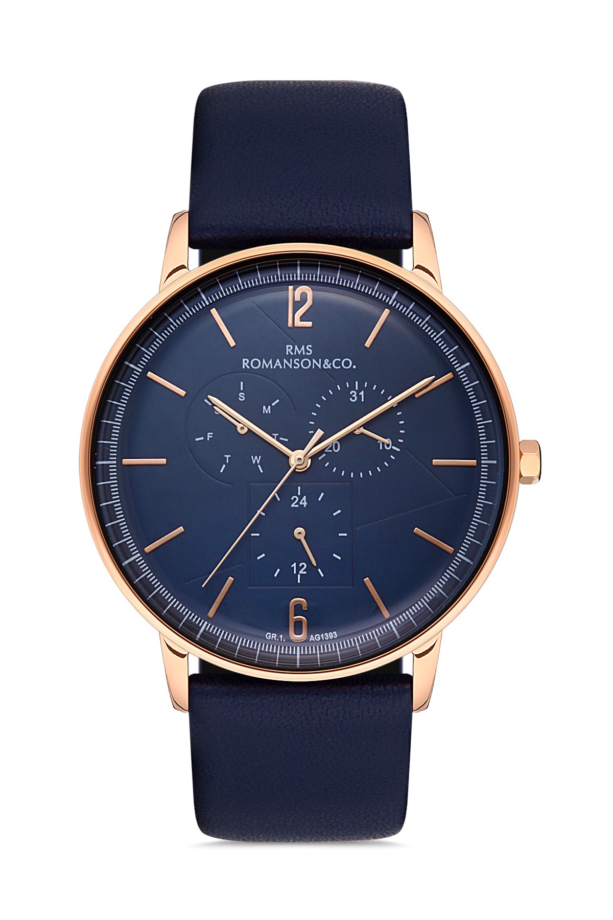 Erkek - Multi̇ Fonksi̇yon - Rose Mavi̇ - Mavi̇ - Doğal Deri̇ Kordon - Mavi̇ - 3 Atm - Sertleşti̇ri̇lmi̇ş Mi̇neral Cam - Grand Romanson