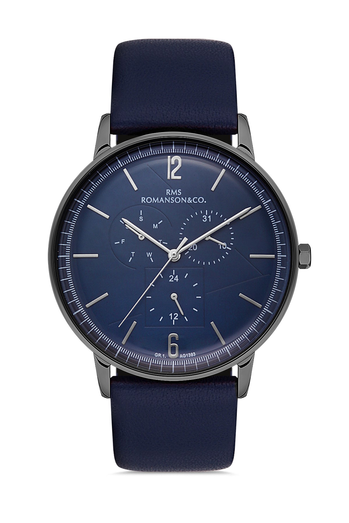 Erkek - Multi̇ Fonksi̇yon - Gun - Mavi̇ - Doğal Deri̇ Kordon - Mavi̇ - 3 Atm - Sertleşti̇ri̇lmi̇ş Mi̇neral Cam - Grand Romanson