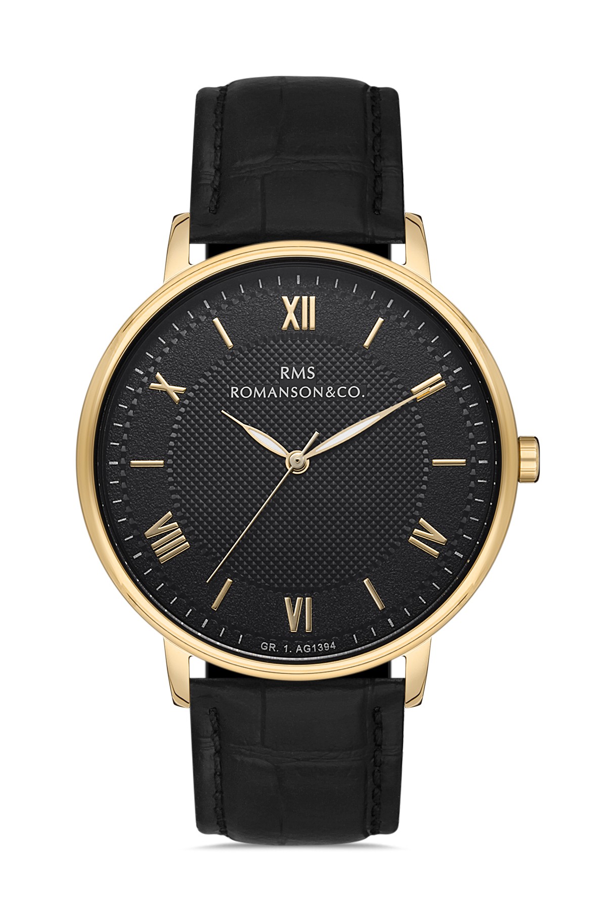 Erkek - Düz - Sari - Si̇yah - Doğal Deri̇ Kordon - Si̇yah - 3 Atm - Sertleşti̇ri̇lmi̇ş Mi̇neral Cam - Grand Romanson