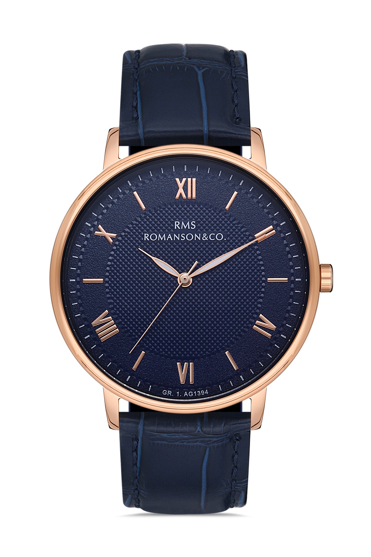 Erkek - Düz - Rose - Mavi̇ - Doğal Deri̇ Kordon - Mavi̇ - 3 Atm - Sertleşti̇ri̇lmi̇ş Mi̇neral Cam - Grand Romanson