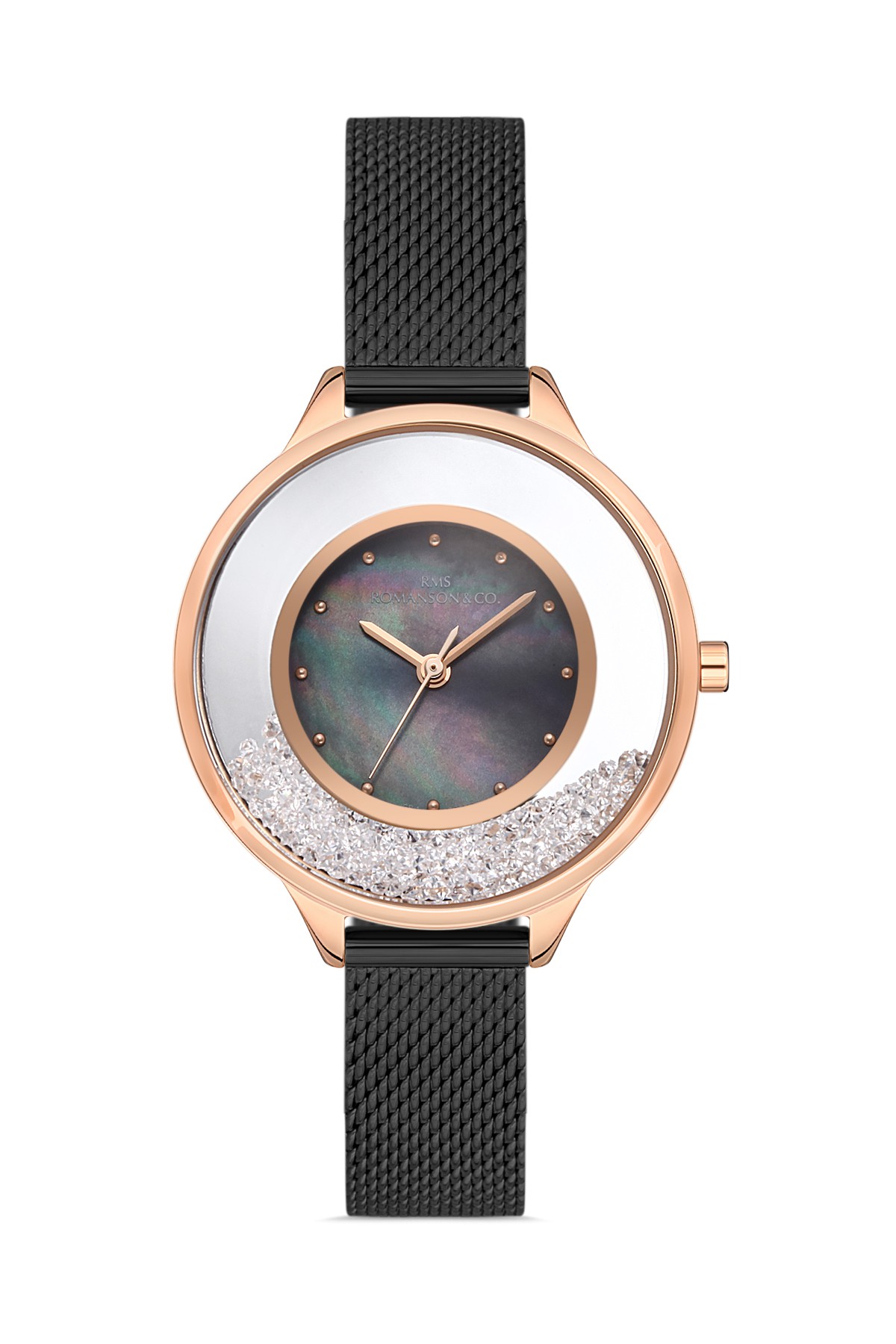 Kadın - Düz - Rose Si̇yah - Si̇yah - Çeli̇k Örme Kordon - 3 Atm - Sertleşti̇ri̇lmi̇ş Mi̇neral Cam - Grand Romanson
