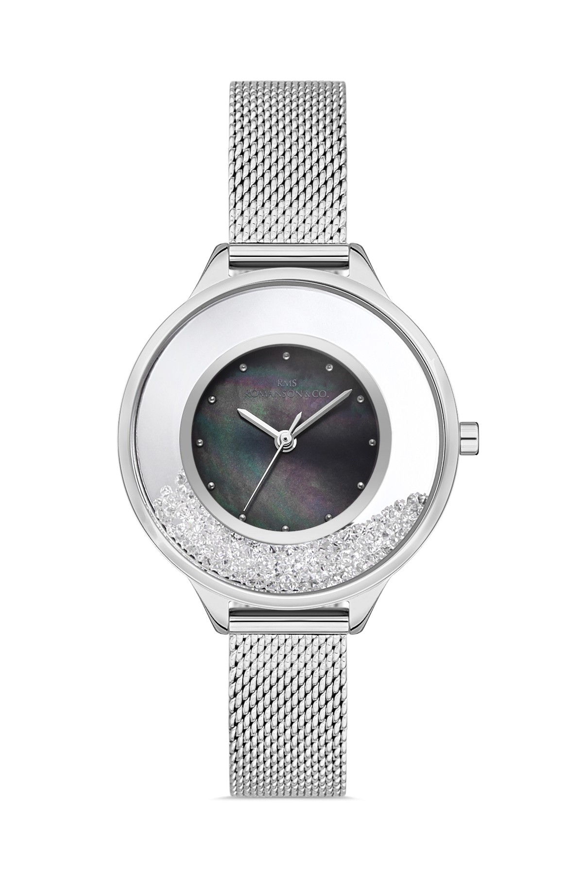 Kadın - Düz - Gümüş - Si̇yah - Çeli̇k Örme Kordon - 3 Atm - Sertleşti̇ri̇lmi̇ş Mi̇neral Cam - Grand Romanson
