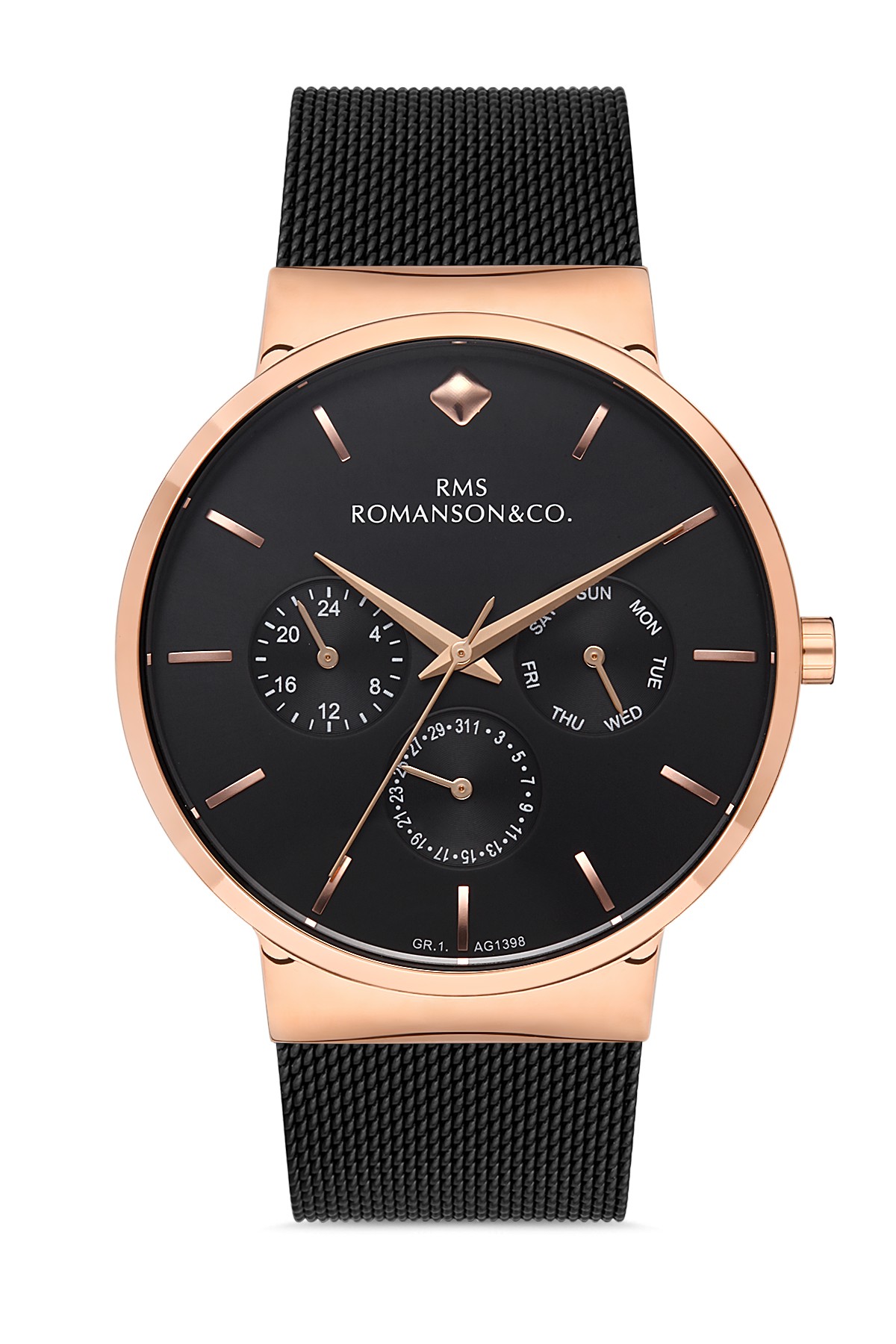 Erkek - Multi̇ Fonksi̇yon - Rose Si̇yah - Si̇yah - Çeli̇k Örme Kordon - 3 Atm - Sertleşti̇ri̇lmi̇ş Mi̇neral Cam - Grand Romanson