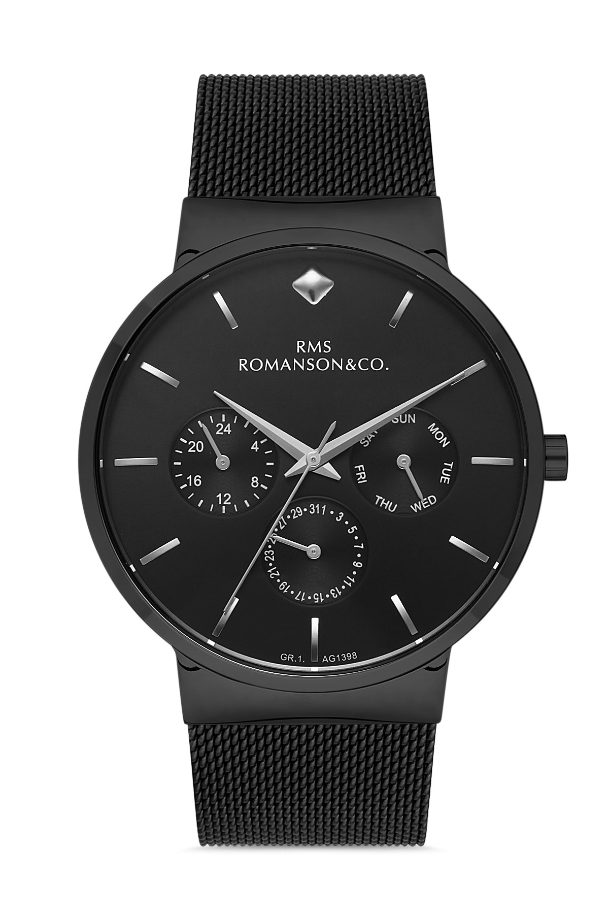 Erkek - Multi̇ Fonksi̇yon - Si̇yah - Si̇yah - Çeli̇k Örme Kordon - 3 Atm - Sertleşti̇ri̇lmi̇ş Mi̇neral Cam - Grand Romanson