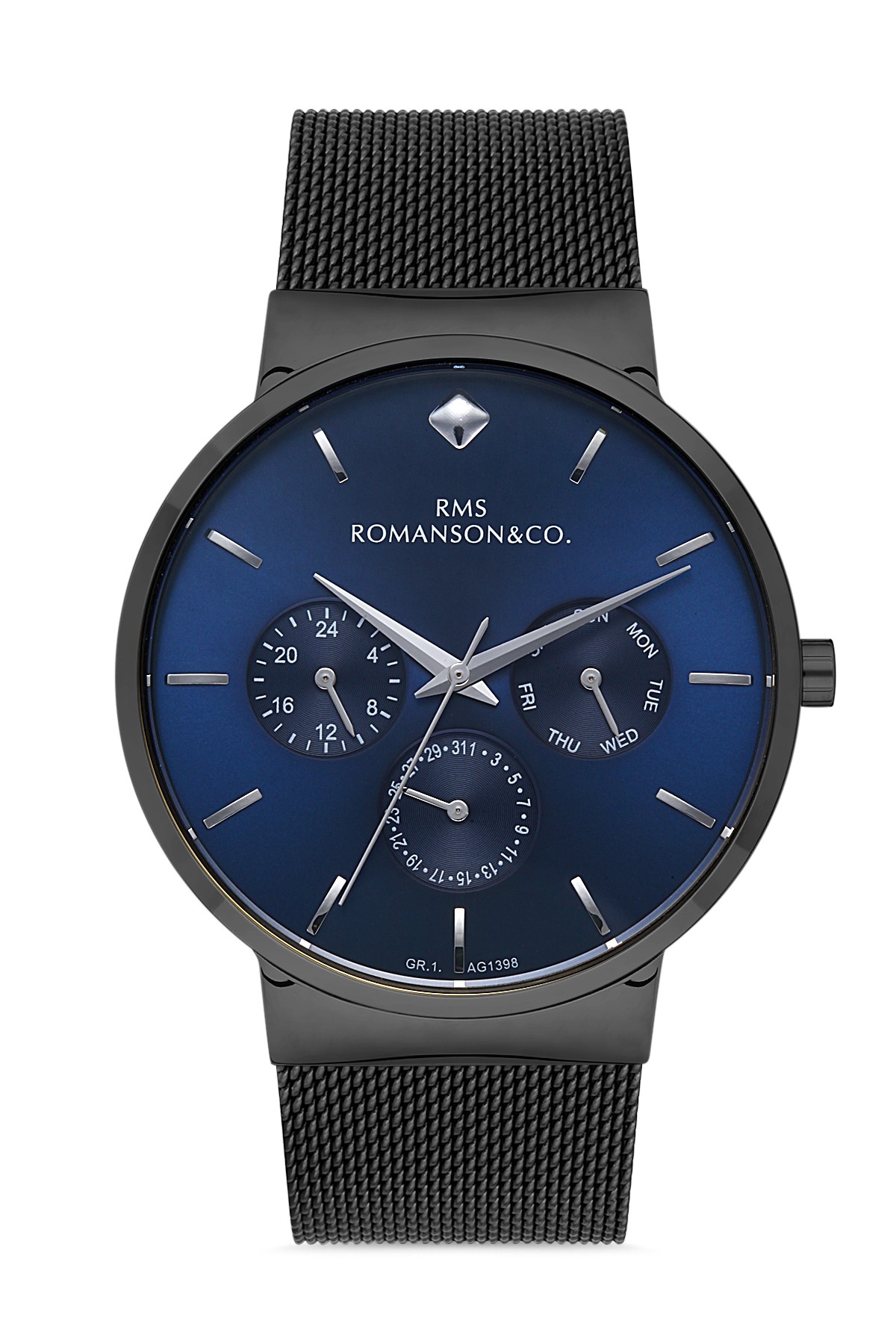 Erkek - Multi̇ Fonksi̇yon - Gun - Mavi̇ - Çeli̇k Örme Kordon - 3 Atm - Sertleşti̇ri̇lmi̇ş Mi̇neral Cam - Grand Romanson