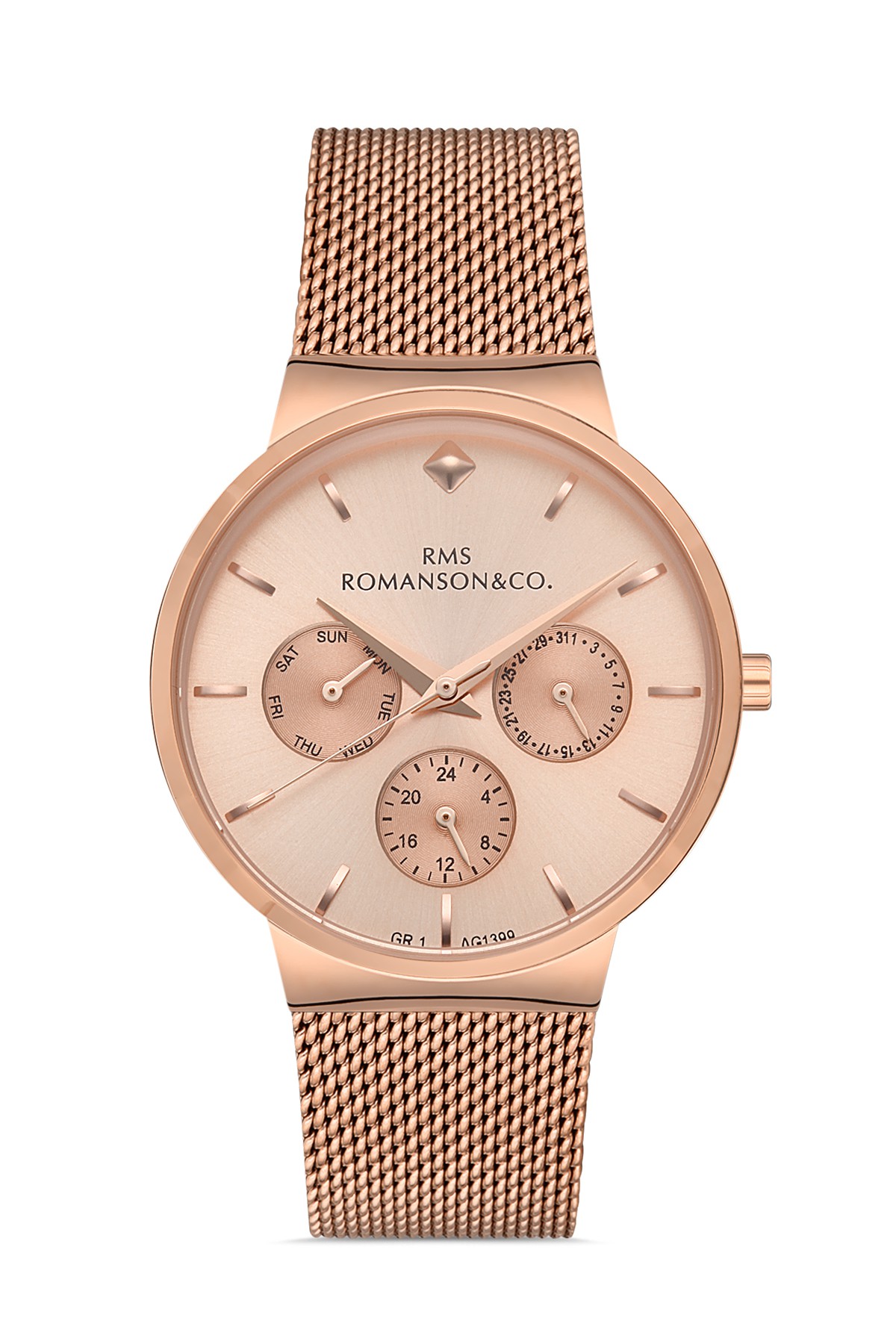 Kadın - Multi̇ Fonksi̇yon - Rose - Rose - Paslanmaz Masi̇f Çeli̇k - 3 Atm - Sertleşti̇ri̇lmi̇ş Mi̇neral Cam - Grand Romanson