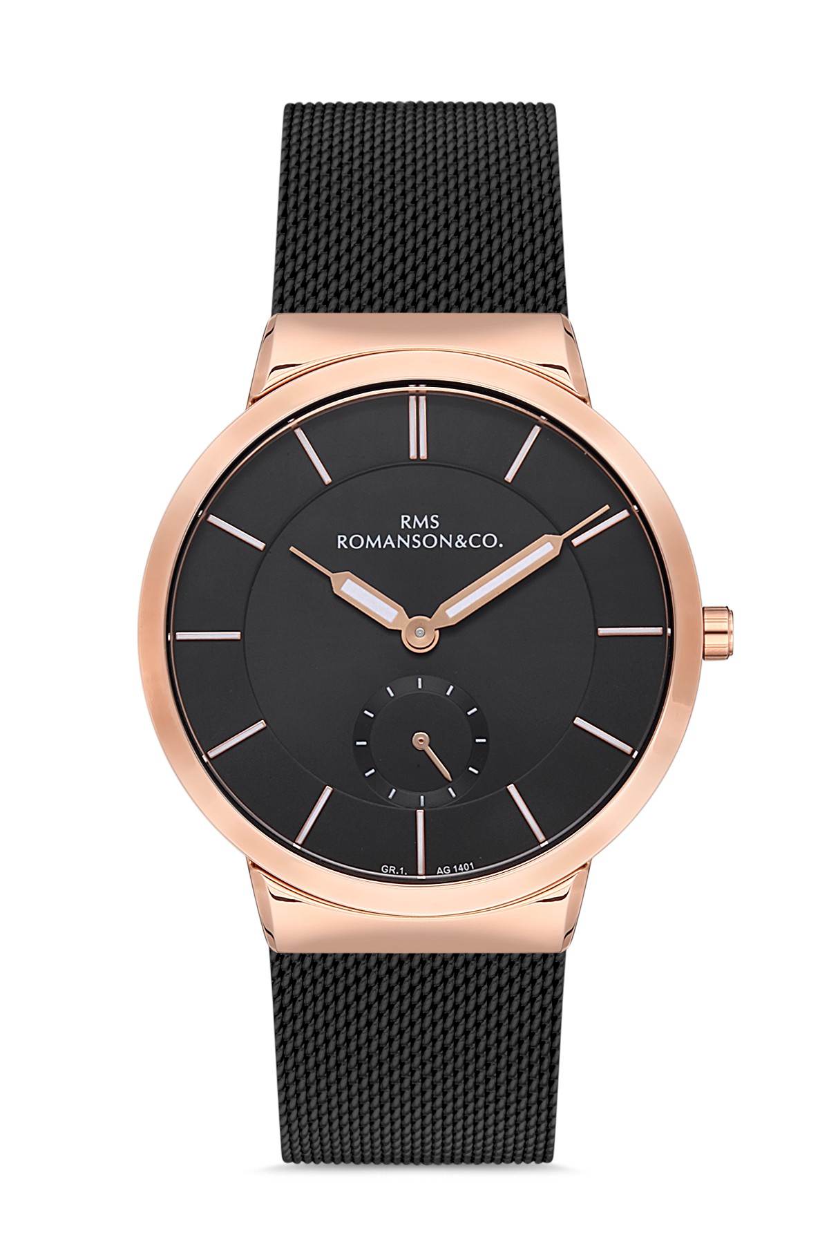 Erkek - Düz - Rose Si̇yah - Si̇yah - Çeli̇k Örme Kordon - 3 Atm - Sertleşti̇ri̇lmi̇ş Mi̇neral Cam - Grand Romanson