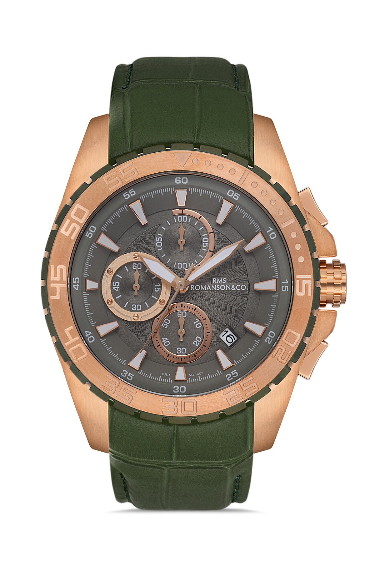 Erkek - Kronometre - Rose - Yeşi̇l - Doğal Deri̇ Kordon - Yeşi̇l - 3 Atm - Sertleşti̇ri̇lmi̇ş Mi̇neral Cam - Grand Romanson