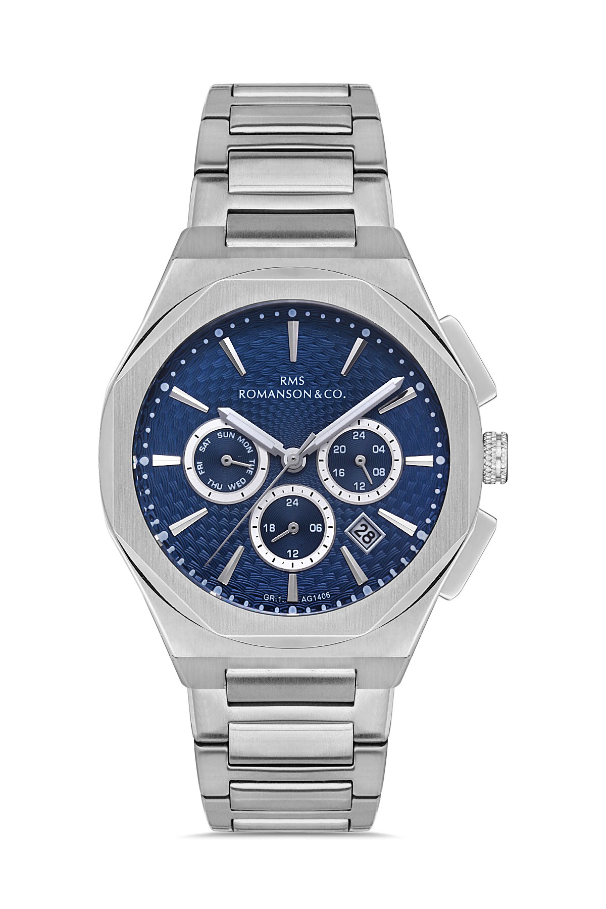Erkek - Multi̇ Fonksi̇yon - Gümüş - Mavi̇ - Paslanmaz Masi̇f Çeli̇k - 3 Atm - Sertleşti̇ri̇lmi̇ş Mi̇neral Cam - Grand Romanson - 43