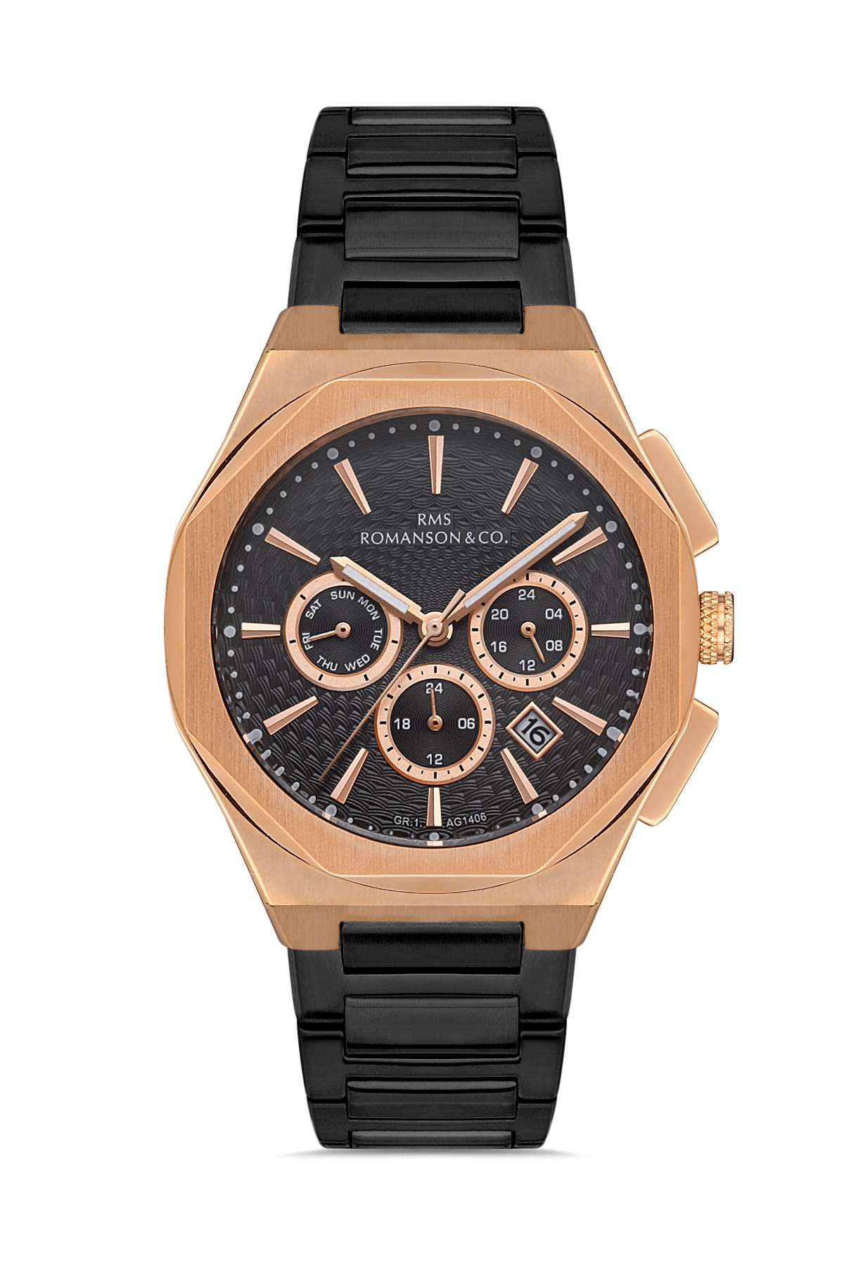 Erkek - Multi̇ Fonksi̇yon - Rose Si̇yah - Si̇yah - Paslanmaz Masi̇f Çeli̇k - 3 Atm - Sertleşti̇ri̇lmi̇ş Mi̇neral Cam - Grand Romanson - 43