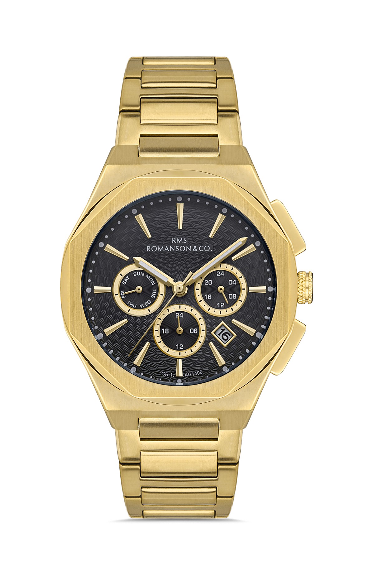 Erkek - Multi̇ Fonksi̇yon - Sari - Si̇yah - Paslanmaz Masi̇f Çeli̇k - 3 Atm - Sertleşti̇ri̇lmi̇ş Mi̇neral Cam - Grand Romanson - 43