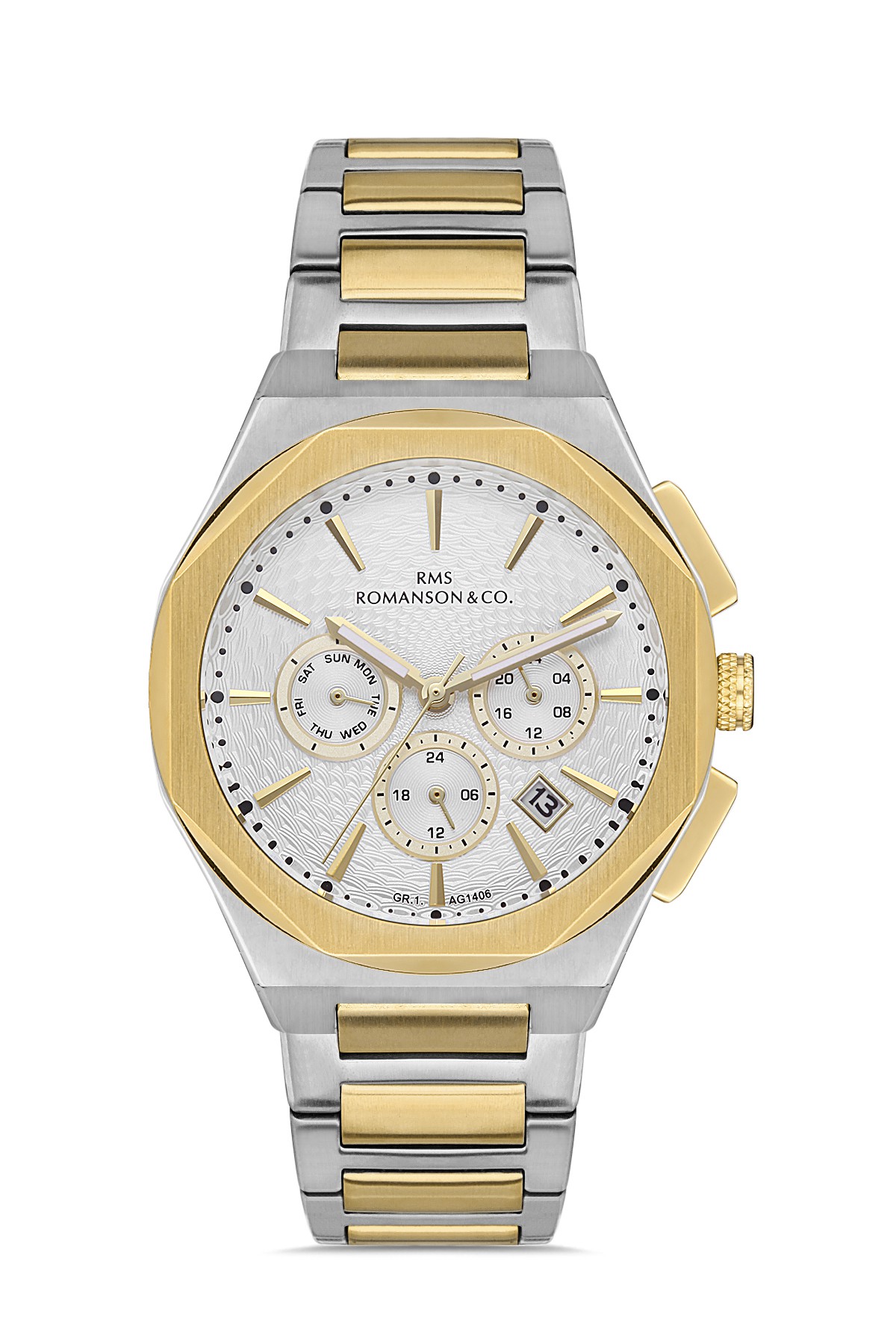 Erkek - Multi̇ Fonksi̇yon - Sari Beyaz - Gümüş - Paslanmaz Masi̇f Çeli̇k - 3 Atm - Sertleşti̇ri̇lmi̇ş Mi̇neral Cam - Grand Romanson - 43