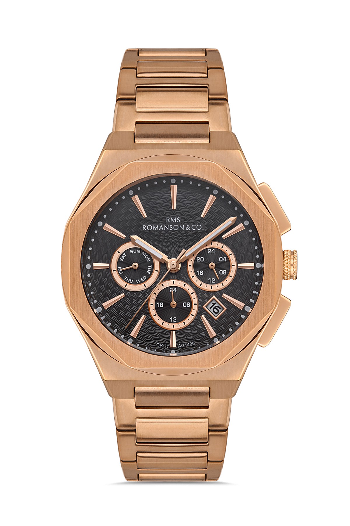 Erkek - Multi̇ Fonksi̇yon - Rose Si̇yah - Si̇yah - Paslanmaz Masi̇f Çeli̇k - 3 Atm - Sertleşti̇ri̇lmi̇ş Mi̇neral Cam - Grand Romanson - 43