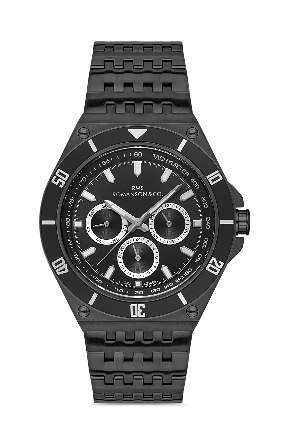 Erkek - Multi̇ Fonksi̇yon - Si̇yah - Si̇yah - Paslanmaz Masi̇f Çeli̇k - 3 Atm - Sertleşti̇ri̇lmi̇ş Mi̇neral Cam - Grand Romanson