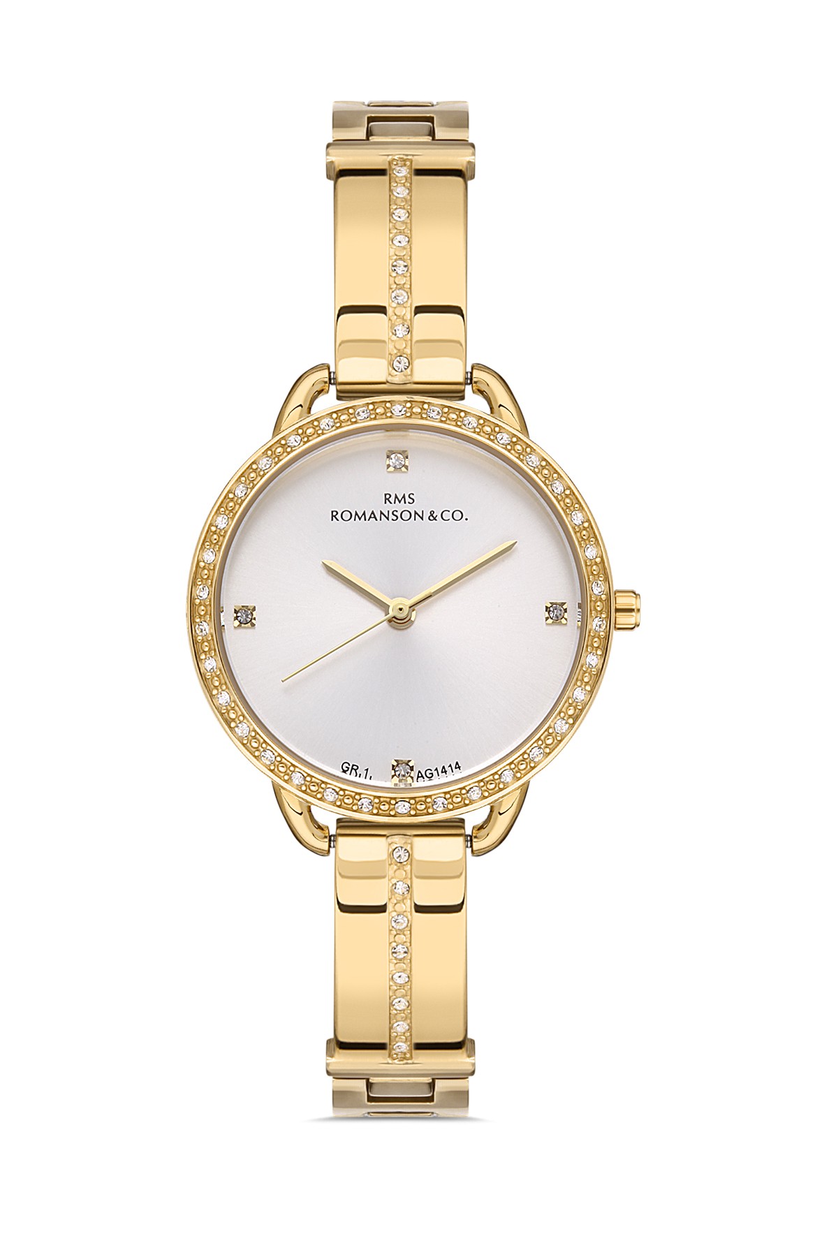 Kadın - Taşli - Sari - Gümüş - Paslanmaz Masi̇f Çeli̇k - 3 Atm - Sertleşti̇ri̇lmi̇ş Mi̇neral Cam - Grand Romanson