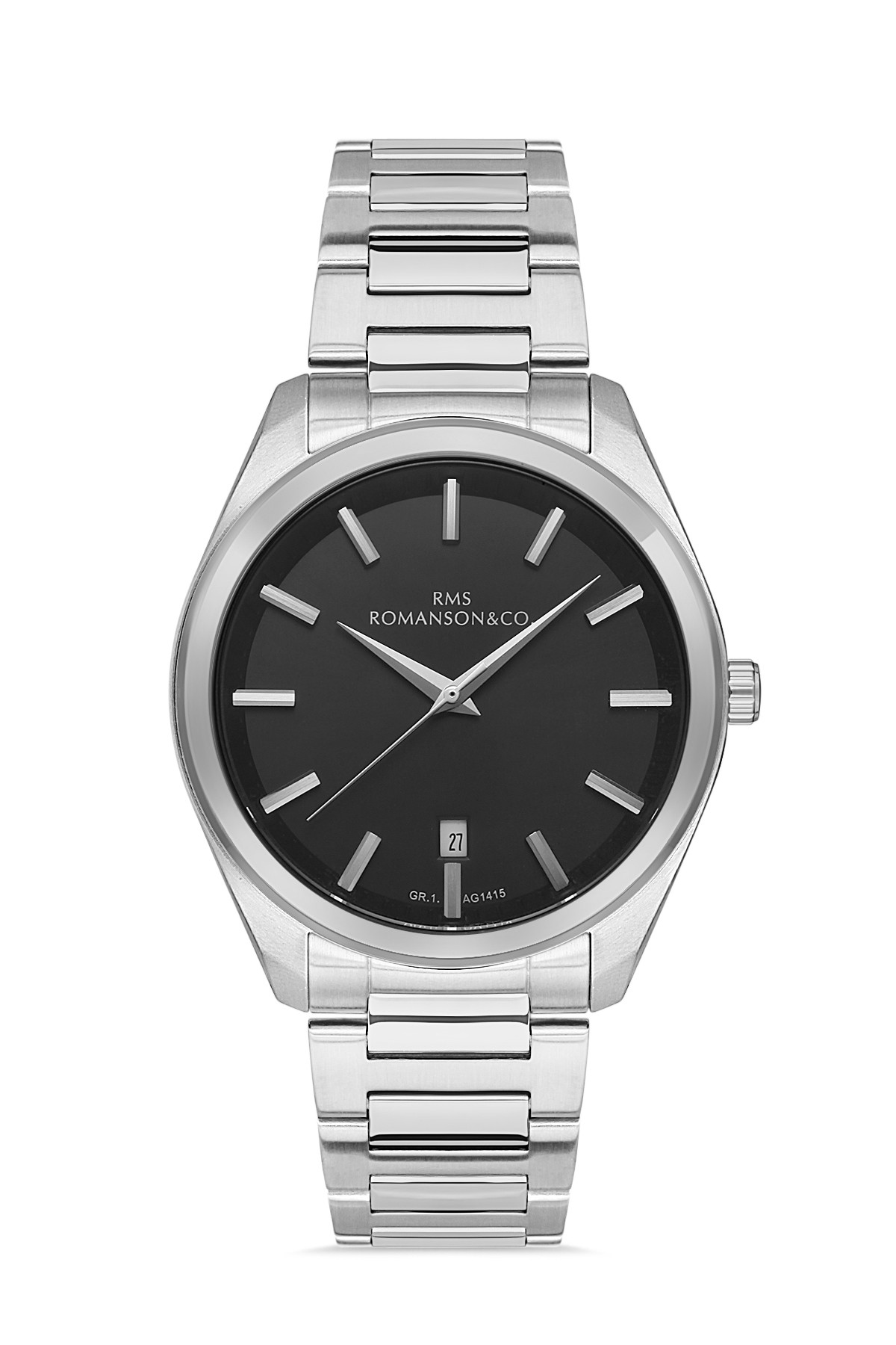 Erkek - Takvi̇mli̇ - Gümüş - Si̇yah - Paslanmaz Masi̇f Çeli̇k - 3 Atm - Sertleşti̇ri̇lmi̇ş Mi̇neral Cam - Grand Romanson