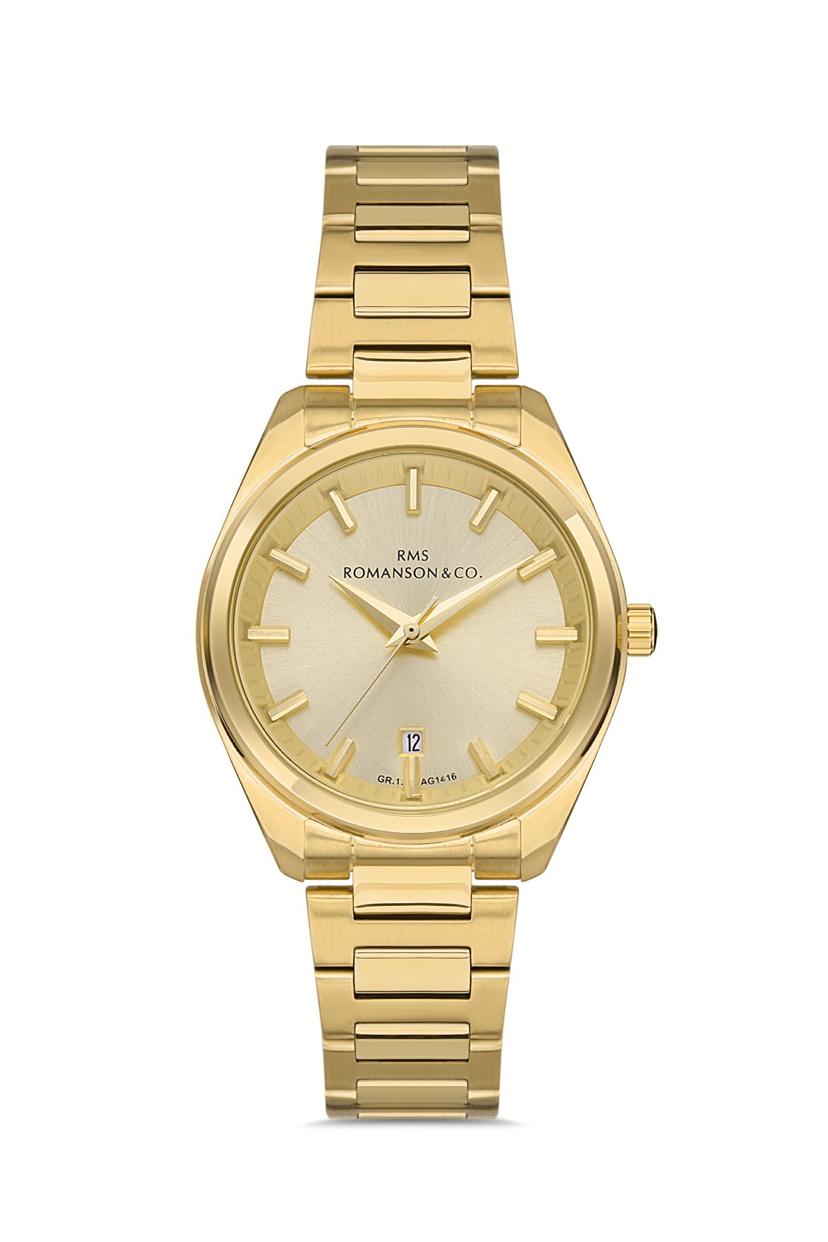 Kadın - Düz - Sari - Sari - Paslanmaz Masi̇f Çeli̇k - 3 Atm - Sertleşti̇ri̇lmi̇ş Mi̇neral Cam - Grand Romanson