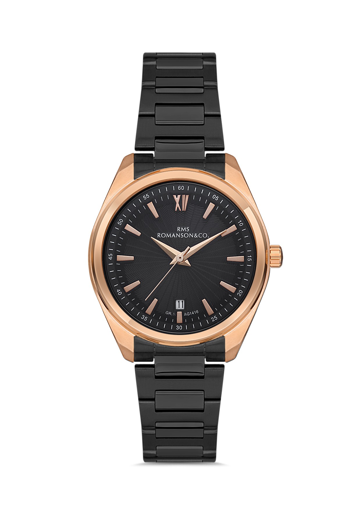 Kadın - Düz - Rose Si̇yah - Si̇yah - Paslanmaz Masi̇f Çeli̇k - 3 Atm - Sertleşti̇ri̇lmi̇ş Mi̇neral Cam - Grand Romanson