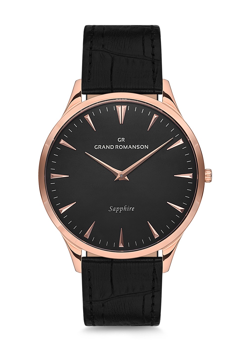 Erkek - Düz - Rose - Si̇yah - Doğal Deri̇ Kordon - Si̇yah - 3 Atm - Sertleşti̇ri̇lmi̇ş Mi̇neral Cam - Grand Romanson
