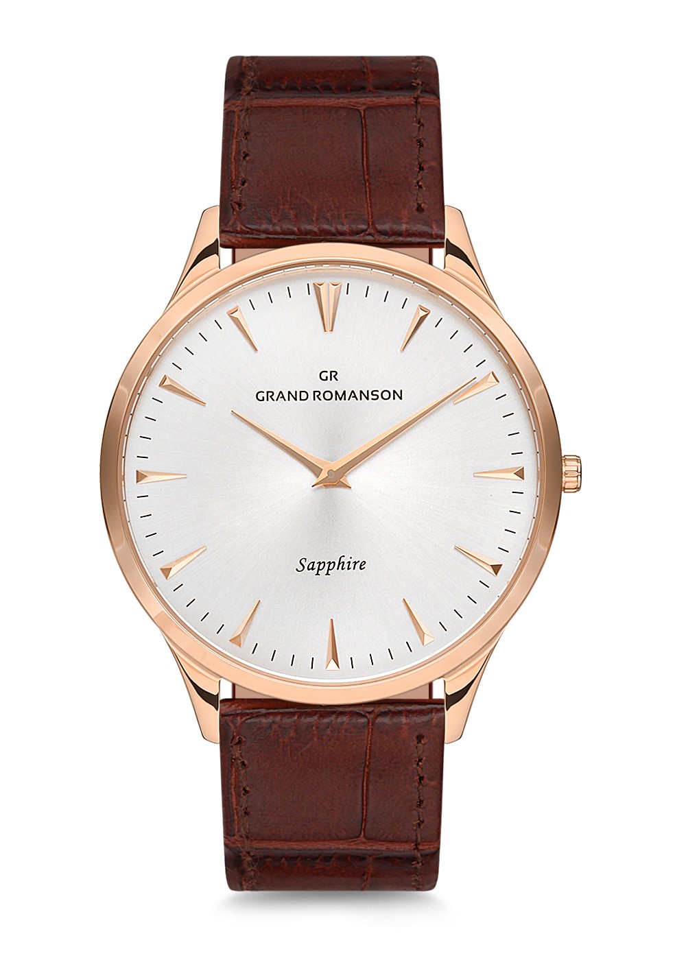 Erkek - Düz - Rose - Gümüş - Doğal Deri̇ Kordon - Kahverengi̇ - 3 Atm - Sertleşti̇ri̇lmi̇ş Mi̇neral Cam - Grand Romanson