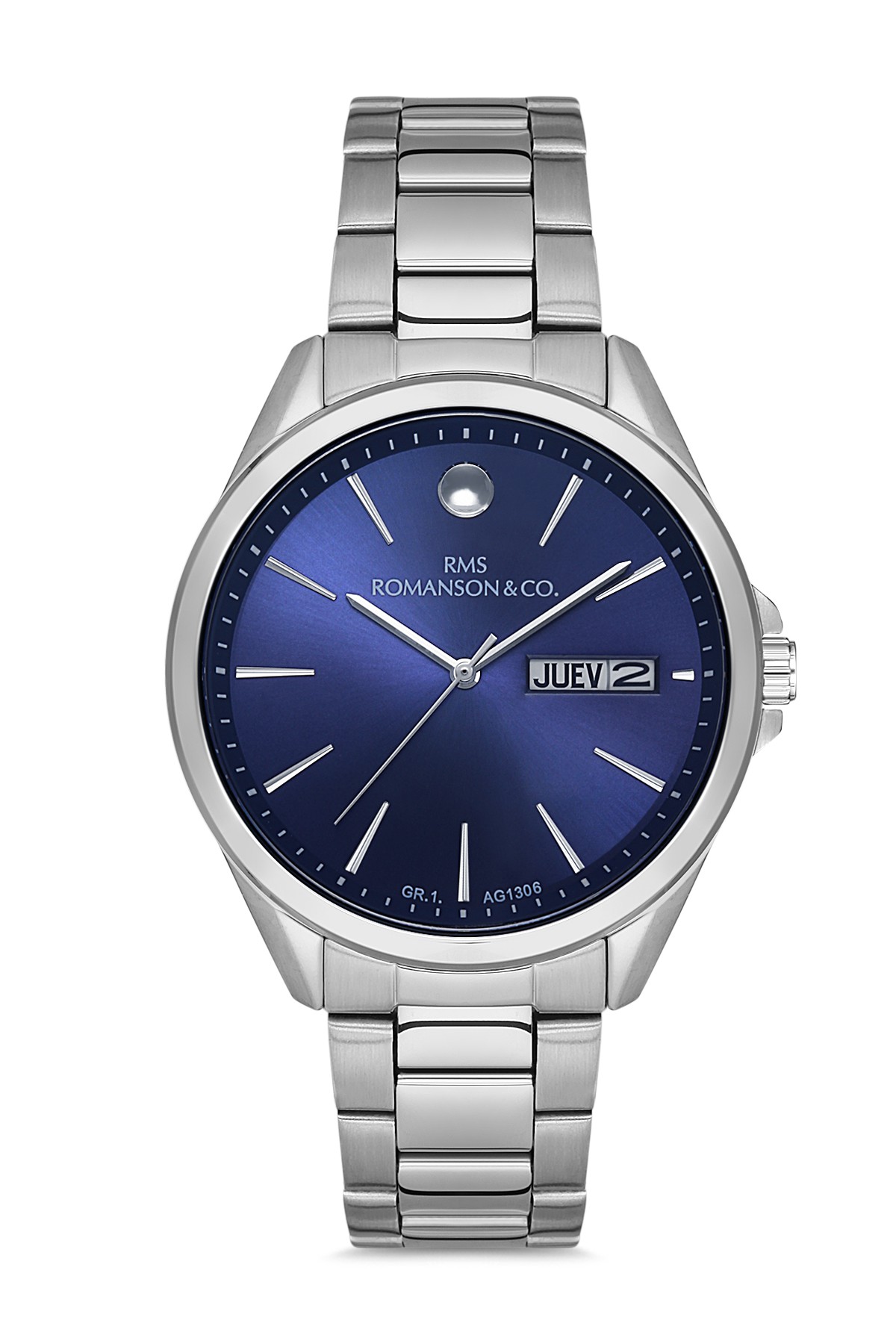 Erkek - Takvi̇mli̇ - Gümüş - Mavi̇ - Paslanmaz Masi̇f Çeli̇k - 3 Atm - Sertleşti̇ri̇lmi̇ş Mi̇neral Cam - Grand Romanson